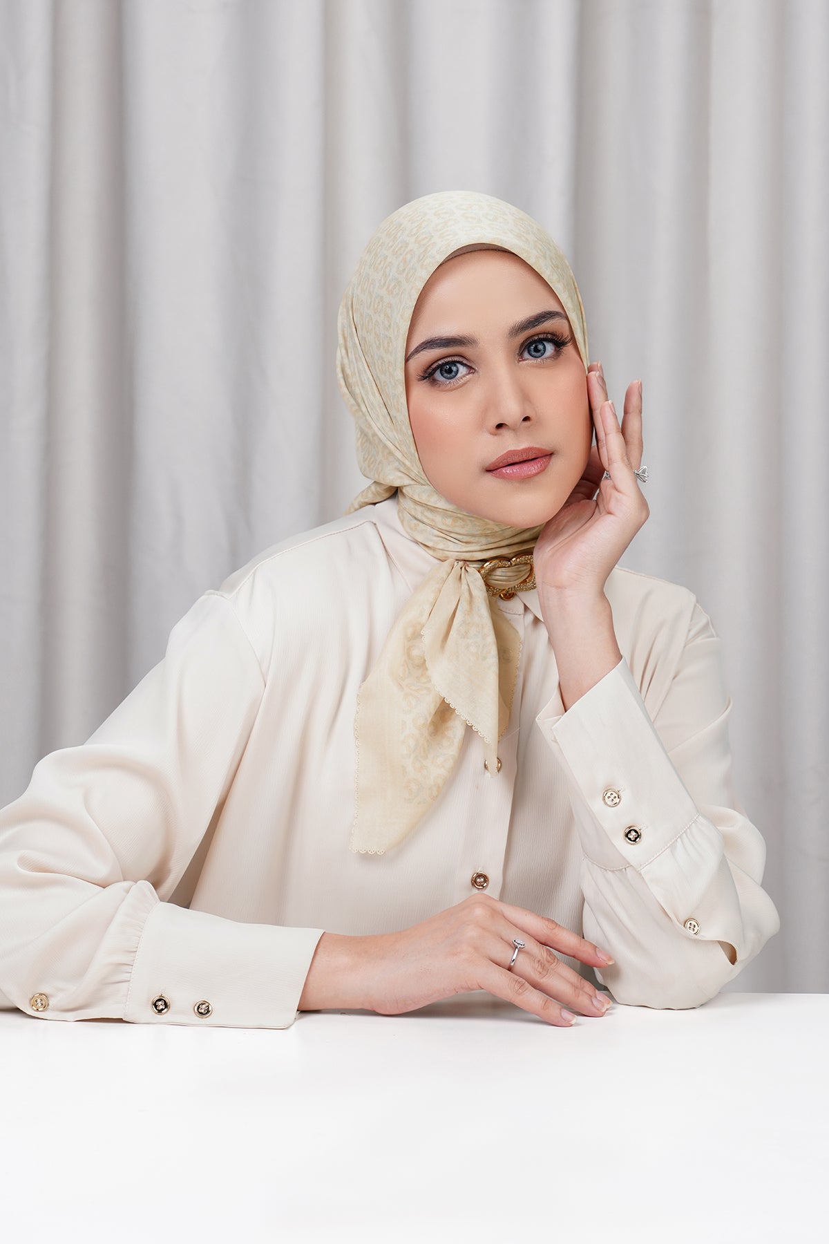 This scarf showcases a beautiful arrangement of small, colorful flowers coming together to form the Tapis monogram. Perfect for adding a touch of elegance to any outfit.