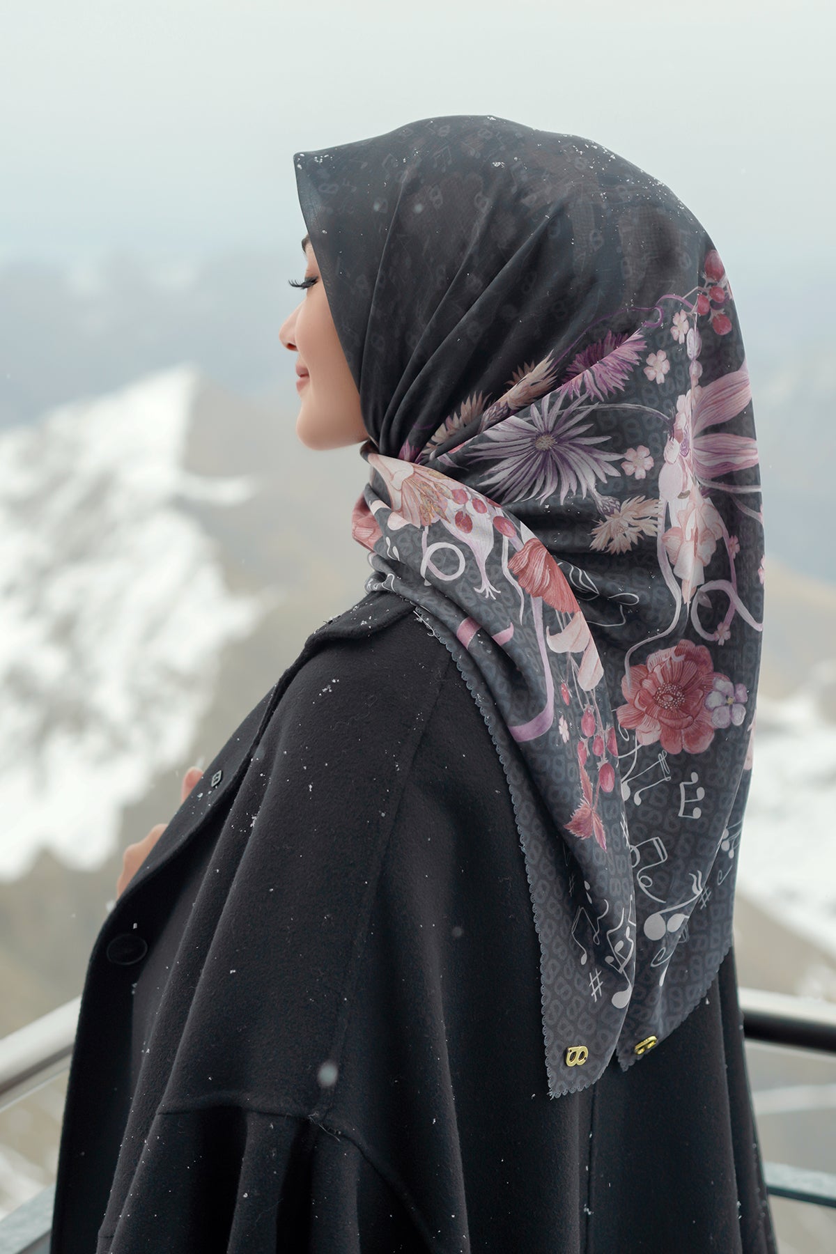 This special edition Buttonscarves x Indah Nada Puspita is adorned with some lovely elements such as flowers and music symbol notation that portray the meaning of the name, Nada. Comes in 12 special color selections.