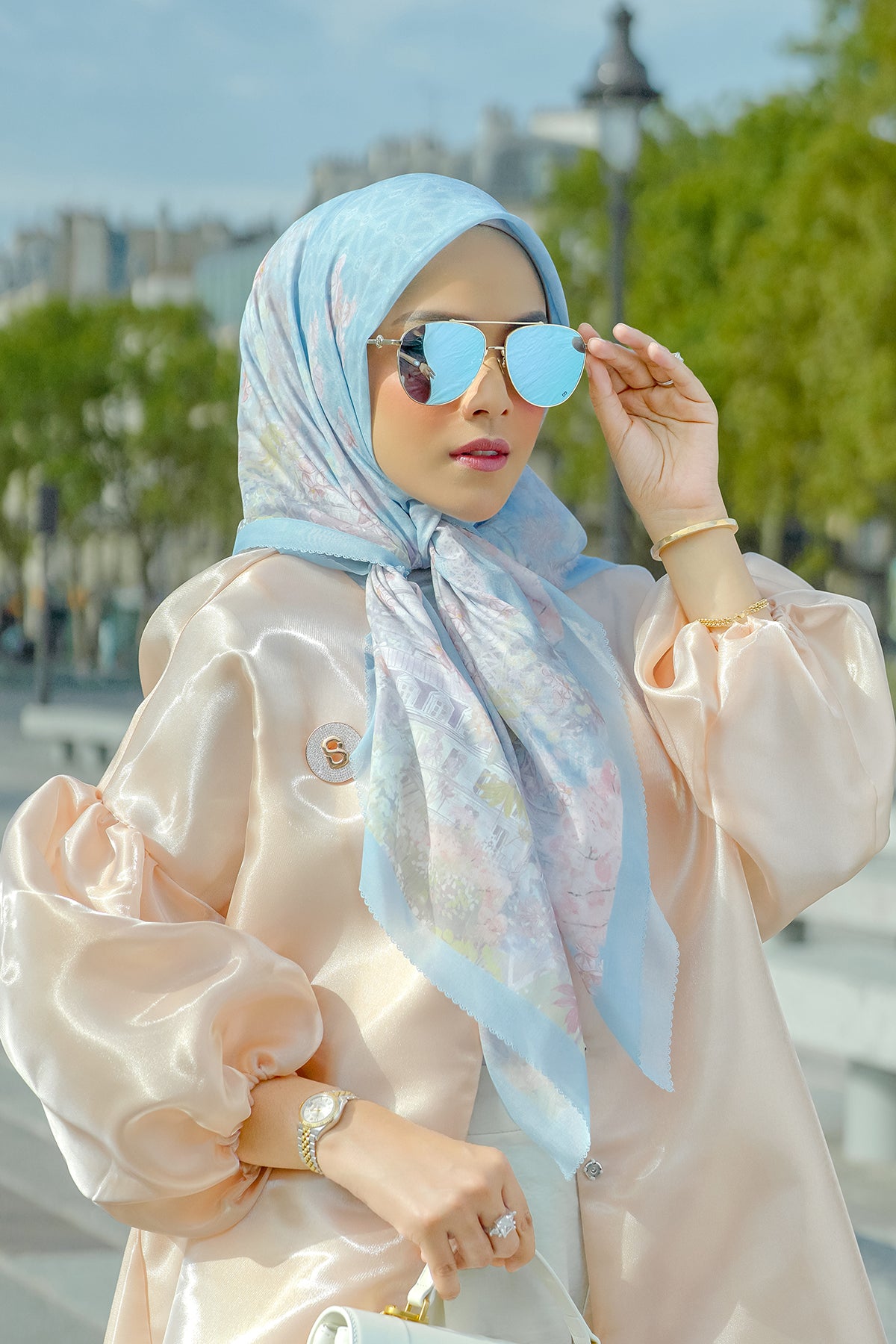 In partnership with the hit TV Series, Emily in Paris, this special Emily in Paris | Buttonscarves: The Parisian Series portrays the beauty of the city of light where dreams, love, and magic are made of. Available in 15 adorable colors selection.