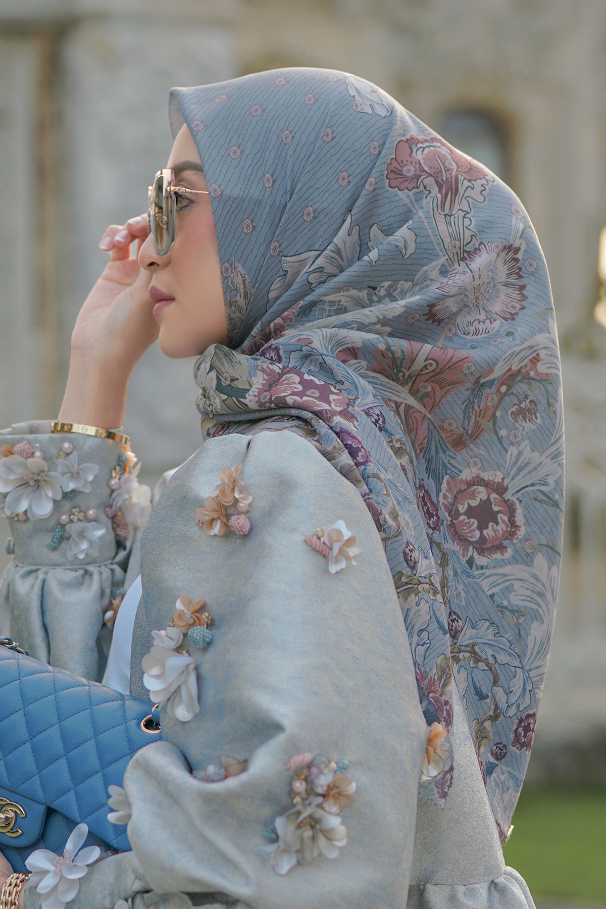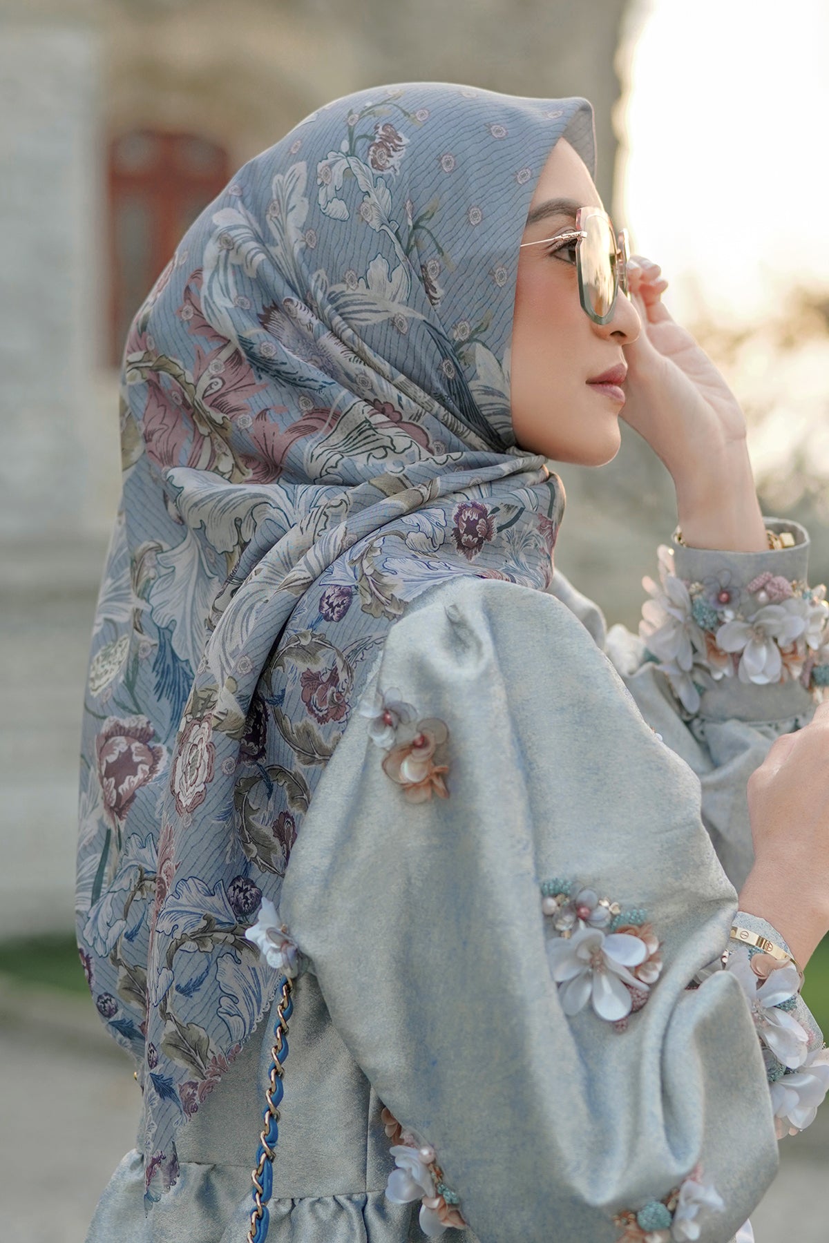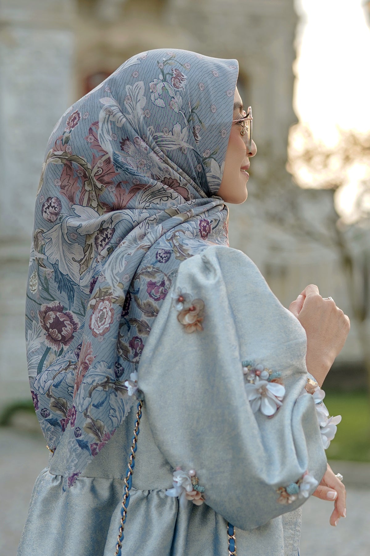 The Royale Voal Square - Blue Jean