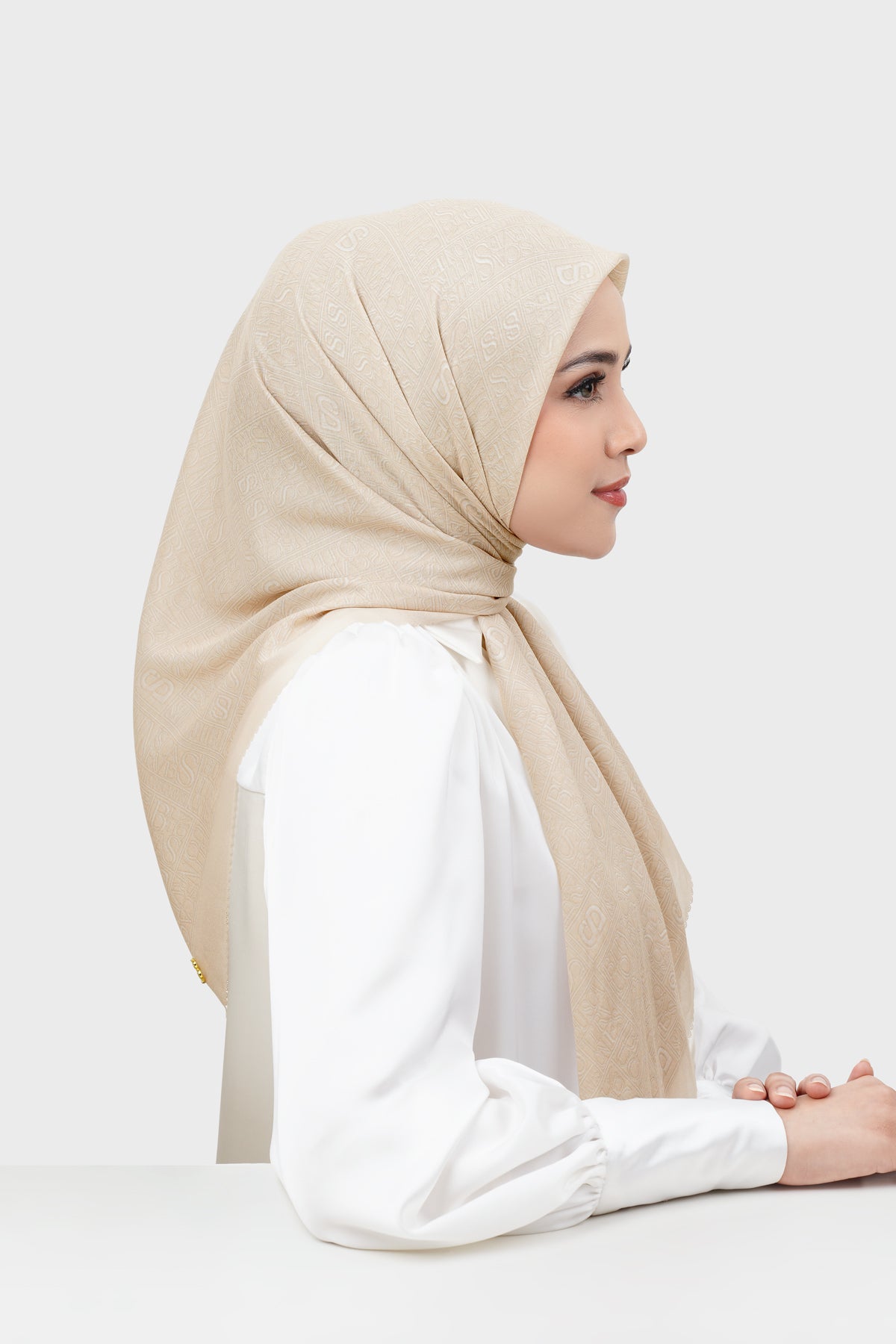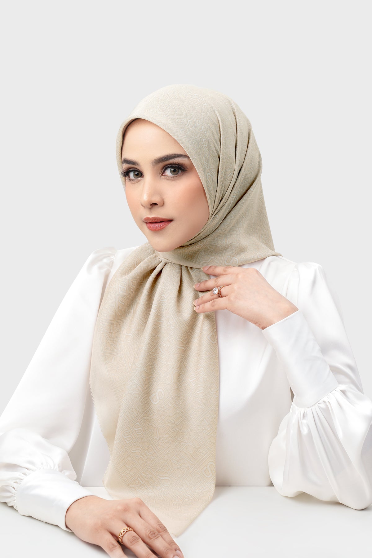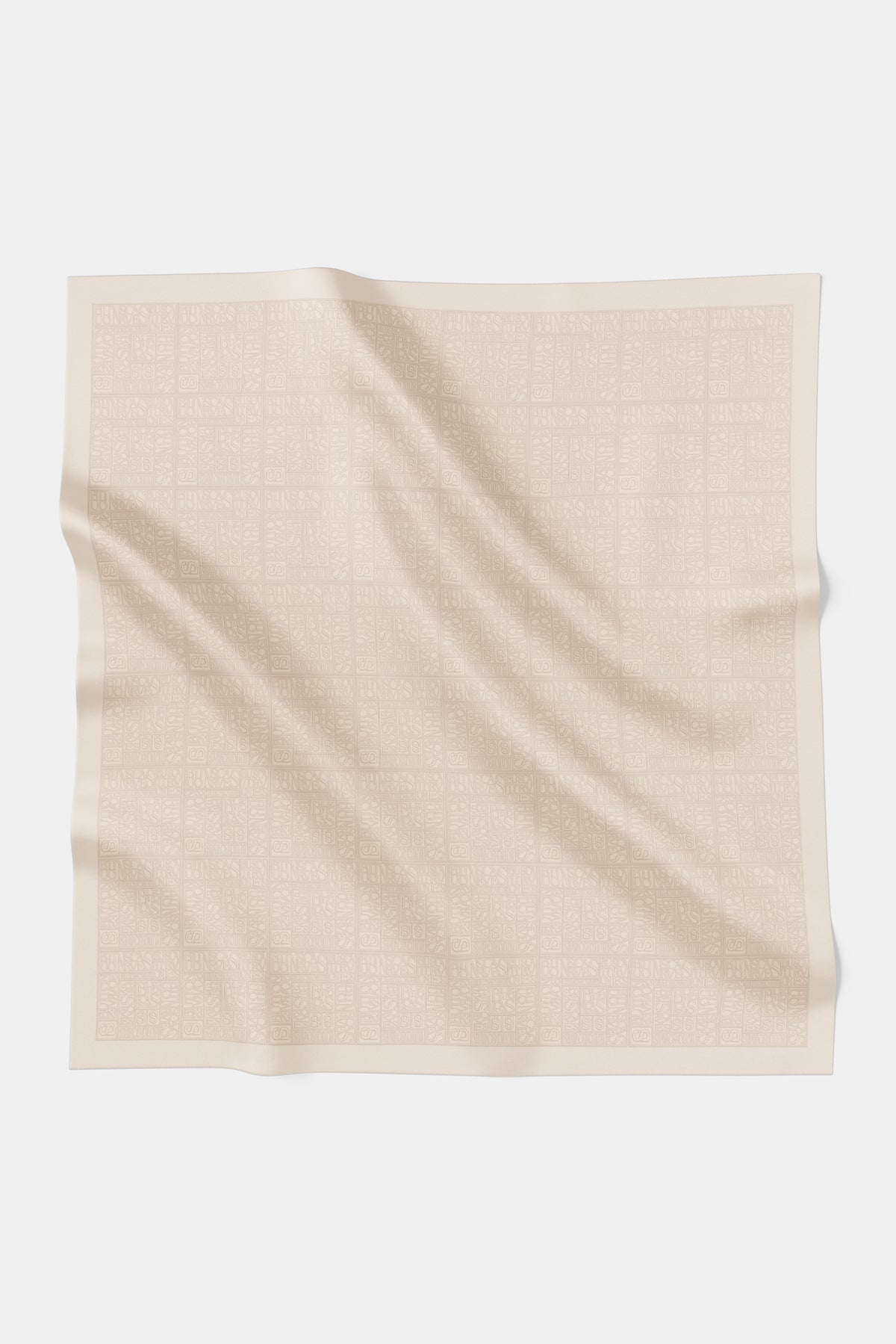 This scarf showcases a signature monogram brought to life through an embossed-like texture, thoughtfully inspired by the elegant interplay of letters and lines. Available in 13 colors.