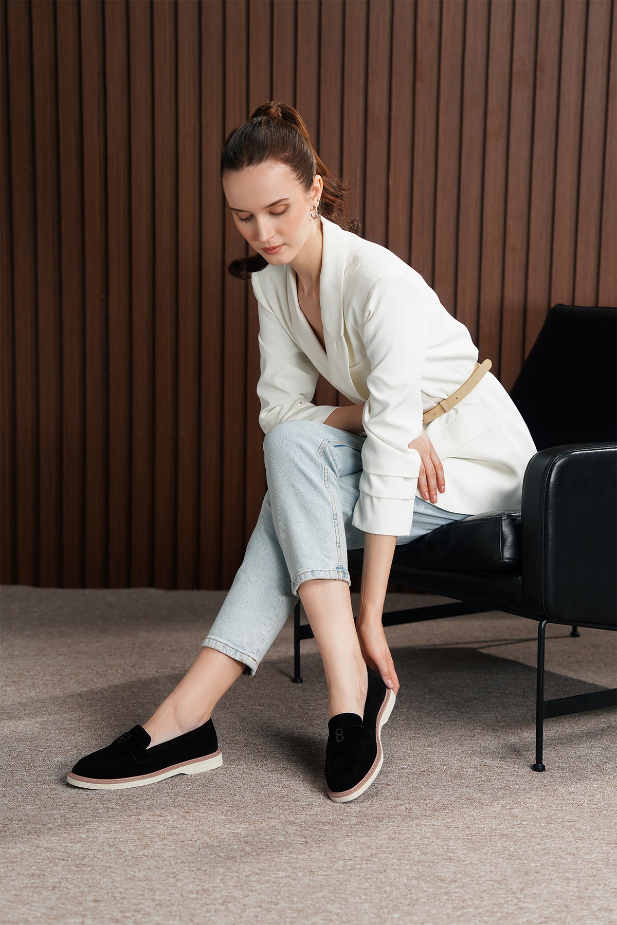 A timeless classic crafted from supple sheep suede in a refined silhouette. The loafer is accented with meticulous stitched details and a signature B logo on the vamp, embodying elegance and impeccable craftsmanship.