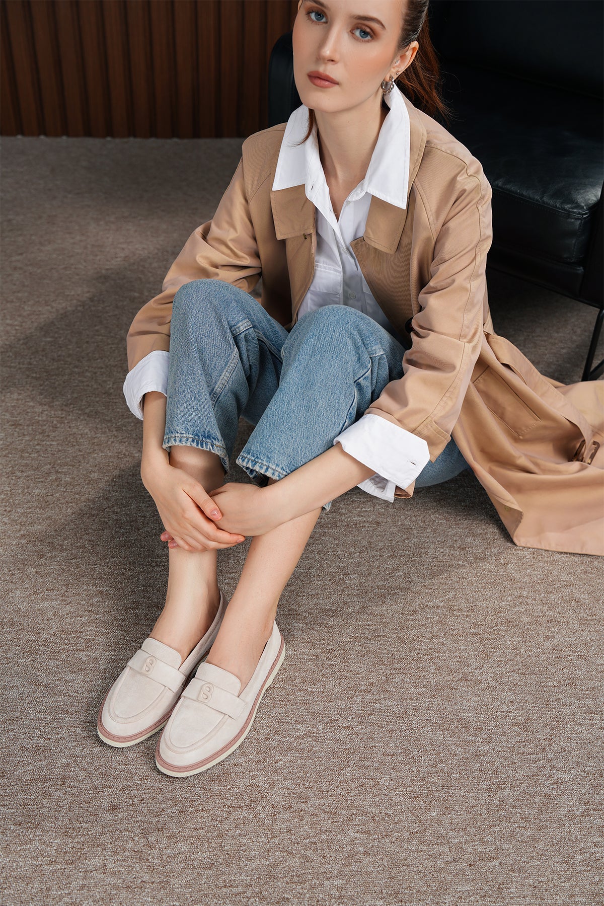 A timeless classic crafted from supple sheep suede in a refined silhouette. The loafer is accented with meticulous stitched details and a signature B logo on the vamp, embodying elegance and impeccable craftsmanship.