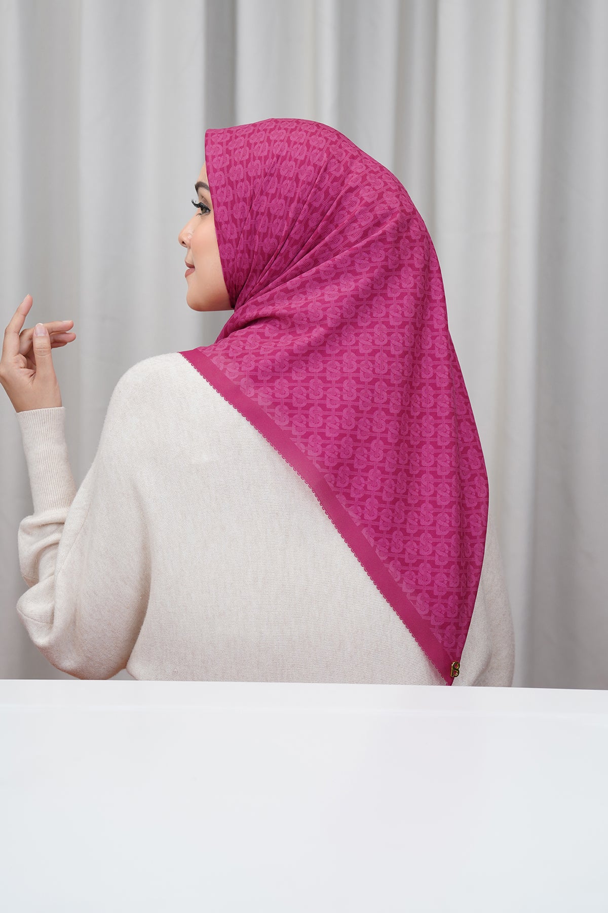 A lovely companion for everyday elegance, this scarf is adorned with an intricate wickerwork signature 'B' monogram pattern.