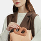 A new style from the iconic Nina Bag, this bag comes in a striking two-tone color combination, featuring the signature ‘B’ top handle. Made from genuine leather, Its sculptural silhouette makes a statement, while the detachable crossbody strap offers versatile styling options.