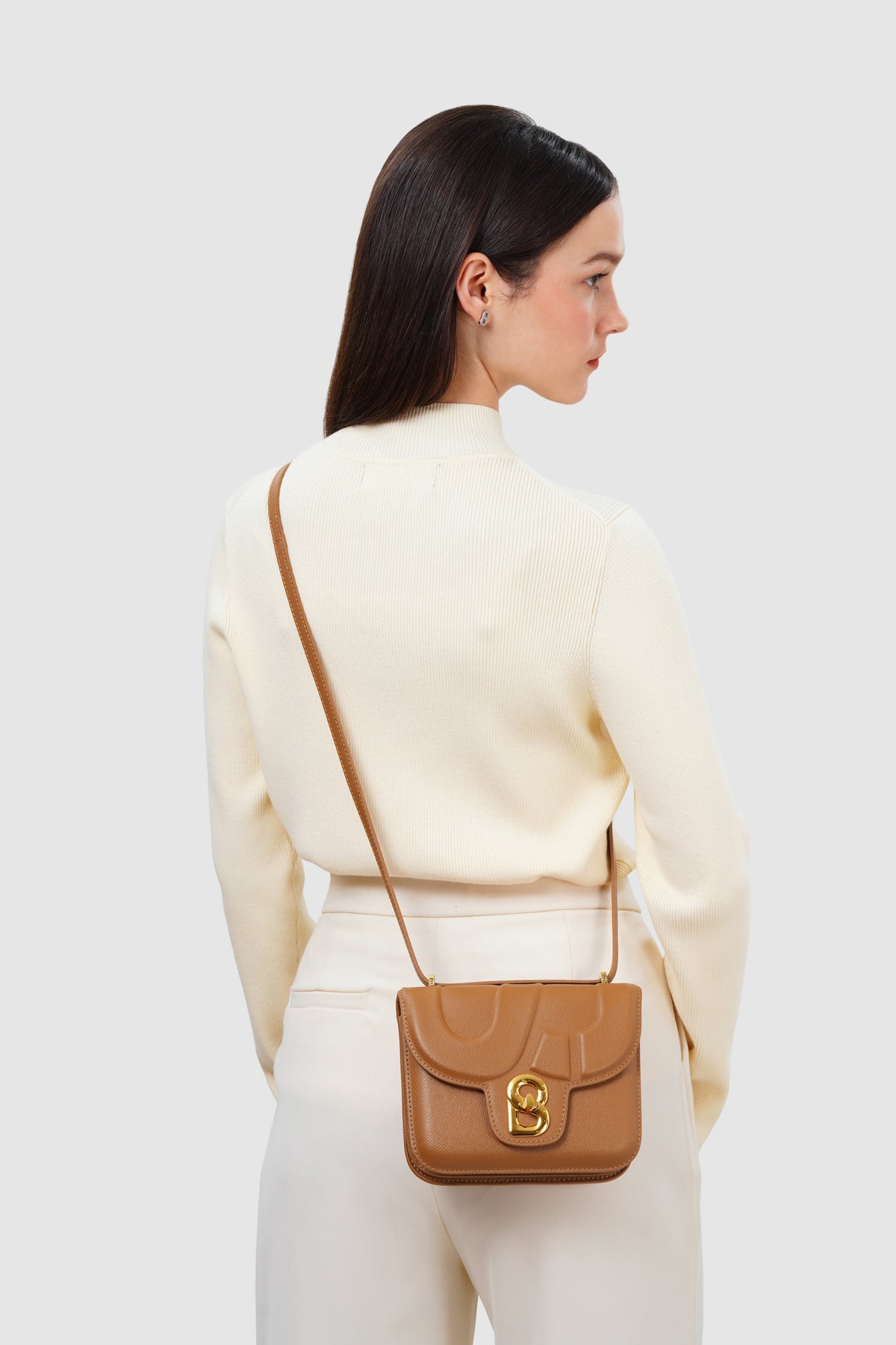 Designed with the signature B flap and twist lock, this bag is crafted from high-quality leather with a smooth finish and high-shine golden hardware. Completed with a versatile adjustable strap for versatility.