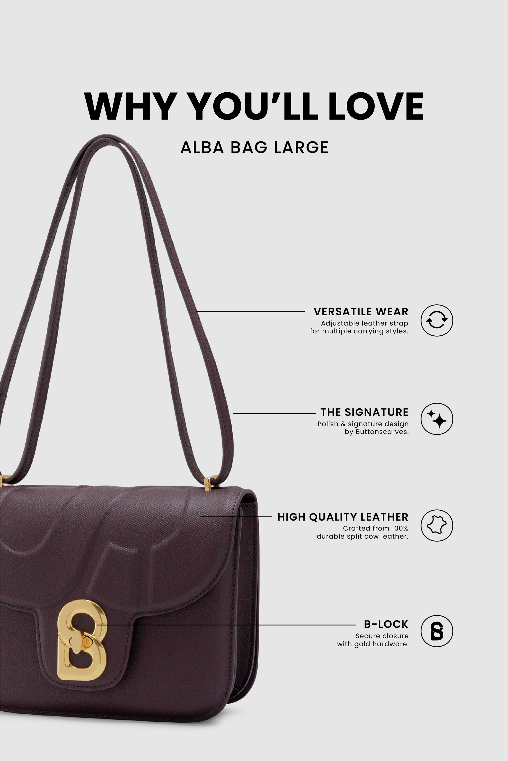 Now available in Large Size, offering more space for daily essentials while maintaining its sleek, structured look. Finished with the embossed Signature B logo and signature B-lock closure, it delivers a polished touch for everyday wear. Complete with an adjustable leather strap, it’s designed for versatile styling across different occasions.