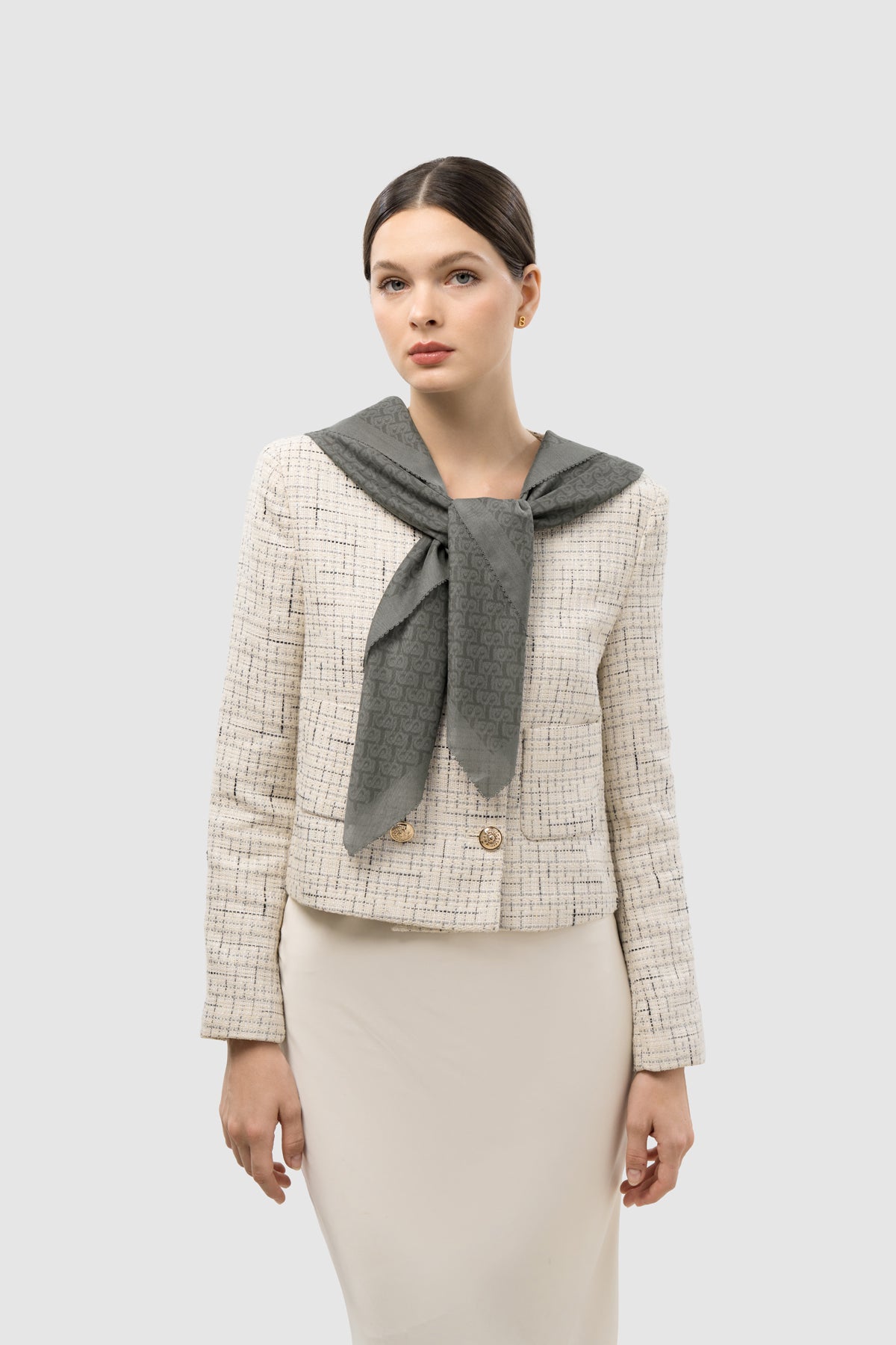 Featuring the signature Bimu monogram and a delicate twill-inspired texture, this scarf is a perfect piece for elevating any outfit, from casual to sophisticated.