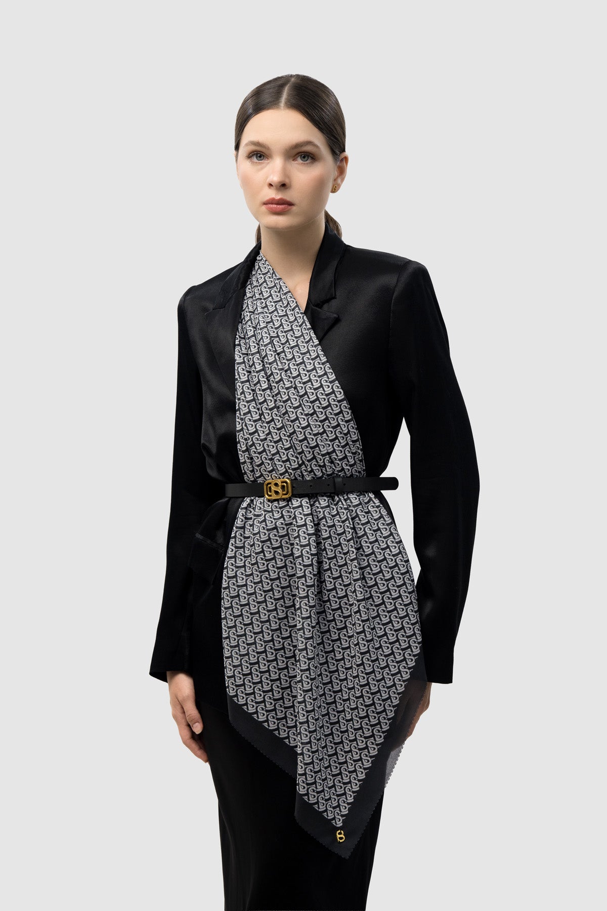 Featuring the signature Bimu monogram and a delicate twill-inspired texture, this scarf is a perfect piece for elevating any outfit, from casual to sophisticated.