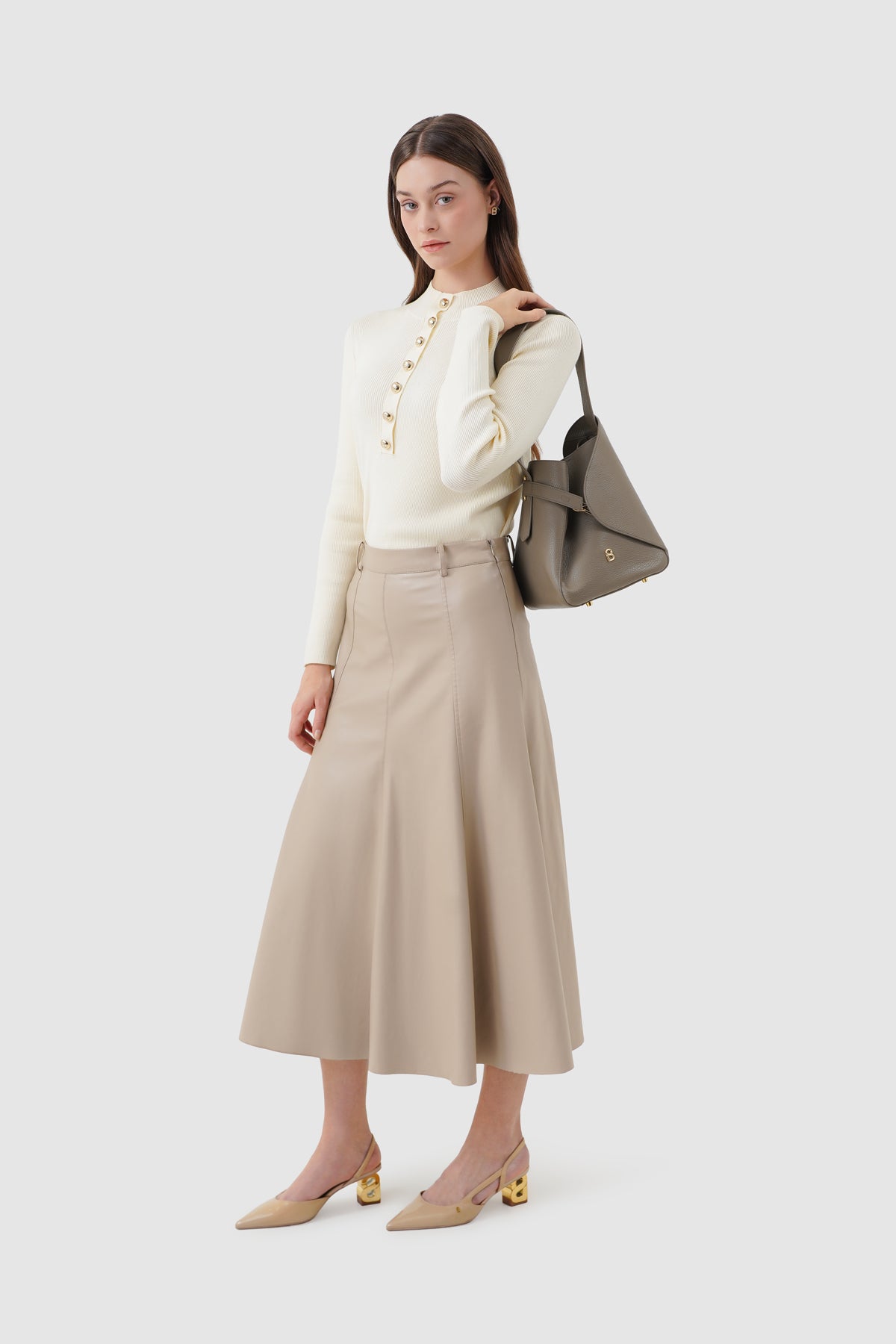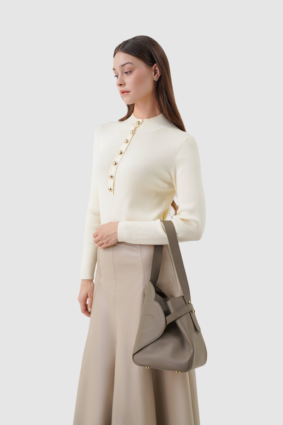 A new take on a favourite, now finished with polished gold hardware. The folded bucket shape stays effortlessly structured. Easy to style, easy to carry, and effortlessly polished.