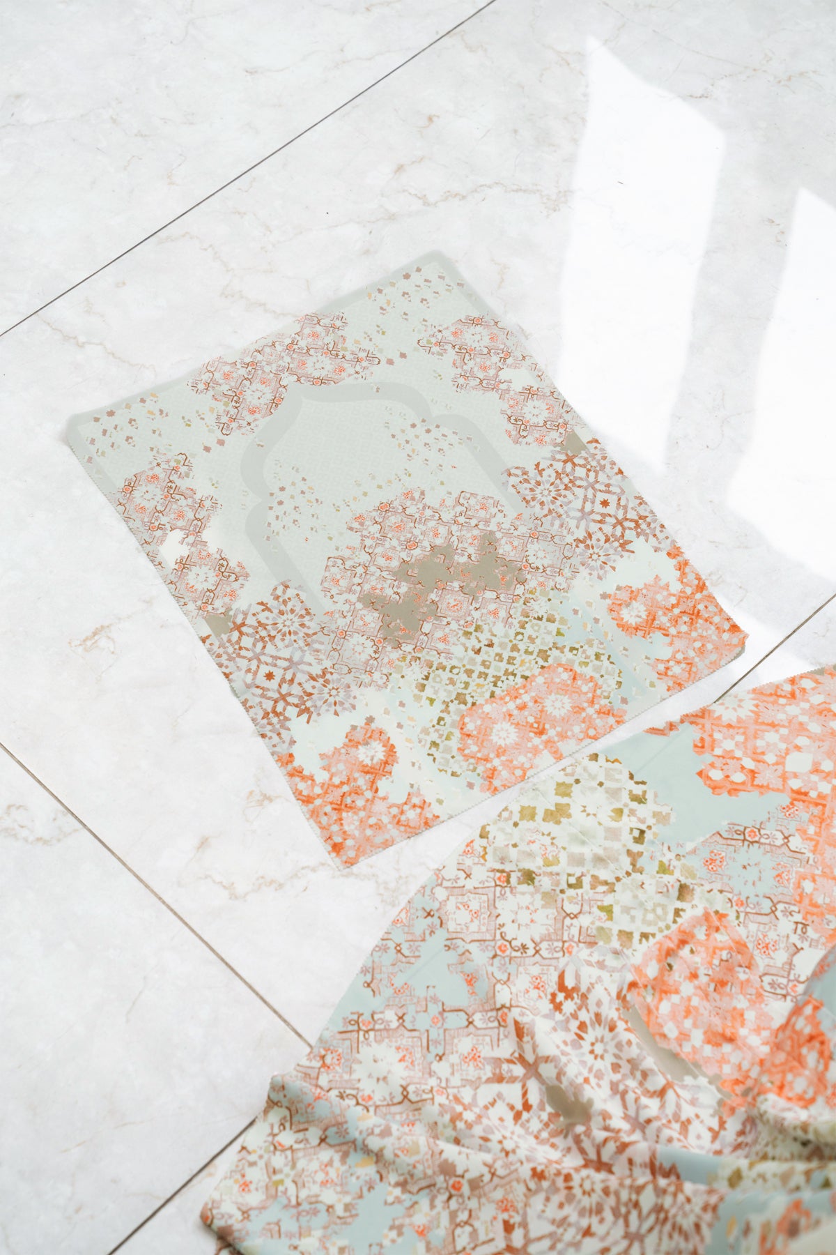 Inspired by the soul of Morocco and the timeless beauty of zellige tiles, each piece is designed with intricate geometric patterns and calming earthy tones. It offers ease in worship while carrying an elegant harmony that reflects both beauty and devotion.
