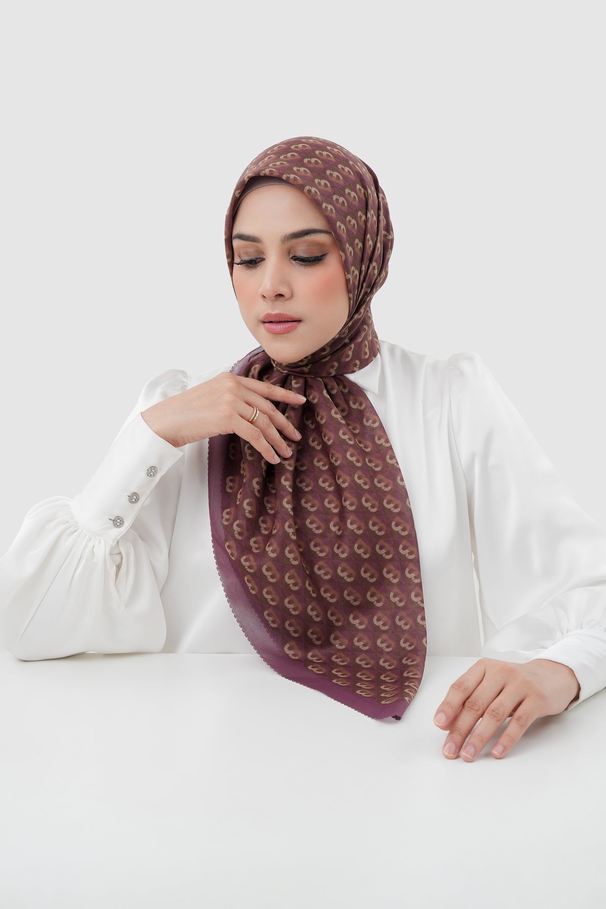 This scarf features a two-tone hexagonal signature B-monogram pattern, creating a play of light and shadow with a subtle 3D effect. Available in 18 charming colors.