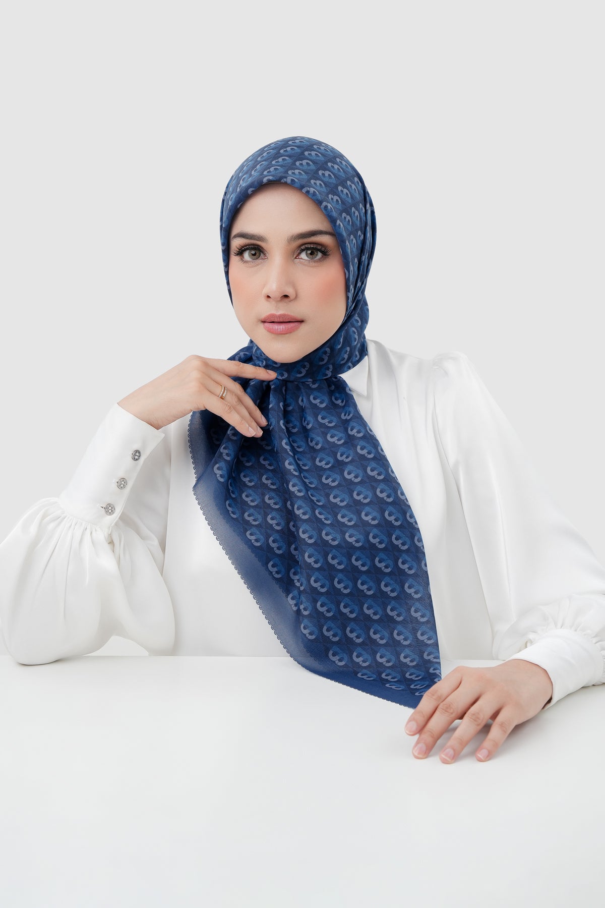 This scarf features a two-tone hexagonal signature B-monogram pattern, creating a play of light and shadow with a subtle 3D effect. Available in 18 charming colors.